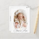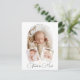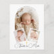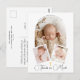 Nuestra hermosa tarjeta de agradecimiento de bautizo es un hermoso recuerdo diseñado para capturar el precioso recuerdo del día especial de tu bebé. Esta tarjeta presenta tres fotos personalizadas de tu pequeño: una foto principal que se muestra en el centro dentro de un elegante marco de arco blanco, con el nombre de tu bebé destacado en la parte superior en una fuente elegante en forma de semicírculo.