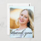 Graduado escrito en elegante caligrafía negra sobre la foto de su retrato de graduado hace una hermosa tarjeta postal de agradecimiento de graduación minimalista. Personalice con su nombre y clase de secundaria o universidad de 2024 bajo la tipografía cursiva.