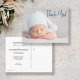 Crea una postal personalizada y sentida de agradecimiento para tus invitados de la ducha de bebé con esta postal de Baby Shower con foto de Blue Baby Boy con escritura moderna. Esta postal horizontal te permite personalizar fácilmente con la fotografía, el mensaje, los detalles de nacimiento del bebé, el inicio de sesión y la dirección de retorno de tu propio recién nacido. La parte delantera de la tarjeta postal presenta un diseño moderno con una elegante tipografía de escritura azul que explica "gracias". Esto añade un toque de sofisticación y estilo a tu carta, haciéndolo destacar y dejando una impresión duradera. No solo puedes expresar tu gratitud a los clientes de la ducha de bebé, sino que también puedes anunciar el nacimiento de tu bebé simultáneamente. Comparte la alegre noticia con una hermosa foto de tu recién nacido, capturando un precioso momento que puede ser apreciado por tus seres queridos. En la parte posterior de la tarjeta postal, puede incluir todos los detalles importantes sobre el nacimiento de su bebé, como su nombre, fecha de nacimiento, estadísticas y cualquier otra información que desee compartir. Además, puede personalizar el inicio de sesión y la dirección de retorno para que sea realmente la suya. Esta tarjeta postal sirve como un recuerdo maravilloso tanto para ti como para tus invitados, conmemorando la ocasión especial de tu ducha de bebé y el nacimiento de tu pequeña. Es una manera reflexiva de expresar su aprecio y compartir las alegres noticias con los que celebraron este hito con ustedes. ¡Felicitaciones de LD Design Loft! ©lddesignloft www.lddesignloft.com ©lddesignloft www.lddesignloft.com