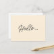 Minimalista, simple y elegante "Hola..." cita postal con texto de escritura a mano en negro sobre fondo de marfil crema, dando un divertido y clásico look atemporal. Se ha dejado en blanco el reverso para su propio mensaje. ¡Qué mejor manera de saludar! Parte de nuestra colección de diseño de guiones, por favor, ¡eche un vistazo!