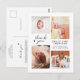 Esta tarjeta postal moderna y atemporal de agradecimiento es ideal para cualquier persona que desee agradecer a sus invitados en el baby shower por los regalos, el amor y el apoyo que han recibido y presentar al nuevo miembro de la familia. El diseño simple y elegante tiene un estilo minimalista y presenta cuatro fotos personalizables colocadas en el collage, tipografía simple y elegante para su información y un guión manuscrito para un encabezado de "gracias". También hay un pequeño corazón flotando alrededor. En el reverso, hay un mensaje de agradecimiento personalizable con sus nombres. Utilice el botón "personalizar" para reemplazar las fotos y editar el texto.
