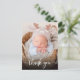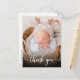 Moderna Y Elegante Guión De Caligrafía Foto De La Recién Nacida Niña Gracias Postcard. Presenta un hermoso texto de "gracias" en un guión de tipo de letra de tipo de letra cruz con escritura manual. Al revés, un mensaje personal prefabricado en blanco y negro. Genial para la niña o el niño. Fácil de personalizar con la foto y los detalles de su bebé.
