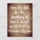 Esta carta de estilo rústico permite guardar los datos de la tipografía de escritura rústica en un fondo de paneles de madera vintage. El reverso tiene detalles adicionales para guardar la fecha, incluido el sitio web del boda, con la dirección de devolución y el espacio para la dirección del destinatario.