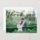Simple y elegante, nuestra colección de bodas de invierno minimalista presenta tipografía cursiva elegante y una fotografía completa de su evento moderno. Agradezca a sus invitados con una encantadora tarjeta postal de agradecimiento de boda con una superposición de guión negro simple en su foto romántica de recién casados.
