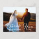 Diseño de tarjeta postal de agradecimiento de boda con foto personalizada con elegante letra simple.