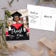 Estas sencillas y modernas tarjetas de agradecimiento de graduación presentan la foto del graduado en la parte delantera, con tipografía de guion informal moderna y elegante. Agregue un mensaje personal de agradecimiento del graduado en la parte trasera de la tarjeta.