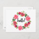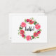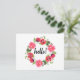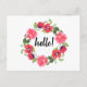 Postal Guirnalda circular de flores rosas y rojas en acua