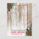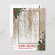 Tarjeta de felicitaciones única, elegante, moderna, bonita y decorativa para las fiestas de Navidad y Año Nuevo. Texto de salutaciones de temporada adorable y espacio para personalizar o personalizar con una foto y el nombre de la familia o los nombres que elija. Con bayas rojas y guirnaldas florales de hojas verdes sobre un diseño de fondo de tablones de madera de granero con textura de madera desgastada de estilo rústico y gris inspirado en una granja. Y un poema de salutación de temporada personalizable en la parte posterior de la tarjeta, incluyendo su dirección de devolución, ciudad, código postal y estado.