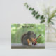 Foto de una ardilla tocando una guitarra eléctrica roja y negra afuera en una cubierta con árboles detrás. La ardilla linda está sonriendo y sosteniendo la guitarra, que tiene llamas sobre ella. ¡Una divertida foto de ardilla para los guitarristas!