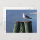 En el río Hudson hay una gaviota sobre pilotes verdes.