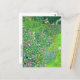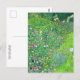 Postal de arte fino con la pintura del artista austriaco Gustav Klimt (1862-1918), Italiano Garden Landscape (1913). Un exuberante jardín de arbustos rosas y blancos con flores y una villa al fondo.