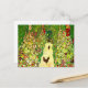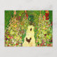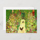 Postal con pintura al óleo de Gustav Klimt Garden con gallos (1917). Dos gallinas marrones se encuentran en un camino al jardín. Hermosas flores rosas, rojas y blancas florecen a lo largo del camino. Un gran regalo para los amantes del arte Art Nouveau y austriaco.