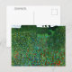 Postal de arte fino con un cuadro del artista austriaco Gustav Klimt (1862-1918) de 1907, Blooming Poppy Field (Blühender Mohn Mohnwiese). Un paisaje impresionante con flores rojas y azules, árboles frutales y arbustos verdes.