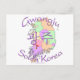 Hermoso mapa colorido de Corea del Sur, hecho a mano, con la ubicación en la ciudad de Gwangju marcada con una bandera. Nombre de la ciudad también en hangul. Familia surcoreana única o regalo de adopción para familias con hijos de la ciudad metropolitana de Gwangju, Corea del Sur. Diseñado por Hendrika de RedThreadMaps.com