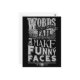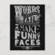 Un diseño tipográfico más bien victoriano y antiguo que hace saber a todos que las palabras no siempre son tu forma preferida de comunicarte. "A veces me faltan las palabras. Cuando eso sucede, hago caras divertidas."