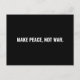 Hacer la paz no la guerra texto en blanco y negro minimalista simple negrita postal de protesta contra la guerra. Personalizable completo de texto blanco sobre fondo negro. Conflicto entre Oriente Medio y Gaza.