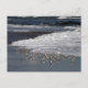 Un grupo de sandpipers recorre la playa entre las olas.