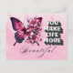 Envía un mensaje sincero con esta elegante postal floral y mariposa con la frase "haces la vida más bella". El suave fondo rosa y el delicado diseño floral de mariposa crean un toque cálido e inspirador, perfecto para pensar en ti, ánimo, aprecio o simplemente por momentos. Ya sea por un amigo, un ser querido o alguien que alegra tu vida, esta postal es una encantadora manera de expresar gratitud y positividad. La parte posterior se deja en blanco para el mensaje personal