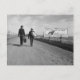 Dos personas caminando por la carretera, dirigiéndose hacia Los Ángeles, California, cerca de un cartel que dice "La próxima vez, prueba el tren. Relájate". Foto de Dorothea Lange, marzo de 1937.