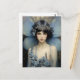 Este retrato de un hermoso hada de estilo victoriano y gótico romántico es simplemente impresionante. La mirada del hada es fascinante, y las obras de arte son ricas en detalle. El hada lleva un bonito vestido azul adornado con delicadas flores. Una tarjeta perfecta para todo amante de la fantasía!