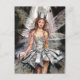 Un hermoso hada en un desfile de moda modela un vestido hecho de artículos reciclados como Relieve metalizado de plata