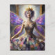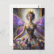 Una hermosa hada con sus hermosas alas púrpuras posa en un vestido de colcha y una corona dorada haciendo su parte para ayudar a salvar el planeta recuperando telas de época para crear nuevas prendas de vestir