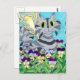 Esta hermosa hada de gatos de rayas grises está sentada en un campo lleno de flores encantadoras comúnmente conocidas como saltos de Johnny, también llamadas pansies salvajes. Toda la escena se sitúa contra un cielo azul cielo sin nubes primaveral y está rodeada por un borde detallado que combina los colores de las flores.
