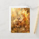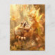 el encantador hada otoñal comparte un bosque dorado con su compañero de mapache. Ilustracion de tiza pastel con tonos cálidos y tierra.