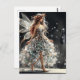 Un hermoso hada en un desfile de moda modela un vestido hecho de plástico reciclado envoltura de burbujas