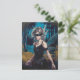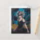 Un hada en una venda de ojos en un bosque con colores mínimos de negro, azul y oro