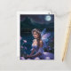 Una mujer de hadas sentada en un parche de flores, con un hermoso paisaje montañoso y lacustre como fondo durante una noche de luna llena. Este hermoso arte de hadas fue creado con una mezcla de mi propio dibujo digital y herramientas de arte de IA.