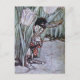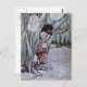 Cuidada hada con espectáculos y una pluma en el pelo escondida en un jardín de tulipanes. Hermoso ilustracion de Arthur Rackham. Cuando oyó la voz de Peter, se alarmó detrás de un tulipán. De la novela "Peter Pan en Kensington Gardens", escrita por J. M. Barrie, publicada en 1906.