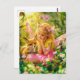 un alegre niño de hadas se arrodilla junto a un pequeño zorro en un bosque de verano exuberante. Un ilustracion de tiza pastel lleno de vida y magia.