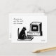 La parte delantera de esta postal tiene un haiku con ilustracion de gato. En la parte de atrás hay datos sobre crímenes de odio que se disparan durante la presidencia de Trump. Su dirección está en funda y le gustaría enviar sugerencias para políticas federales anti-racistas.