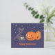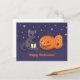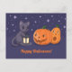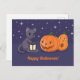 Postal Halloween Black Cat Pumpkins Lantern Purple