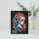 Postal Halloween con cráneo de azúcar, Día de los Muertos