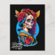Postal Halloween con cráneo de azúcar, Día de los Muertos