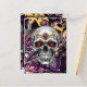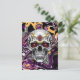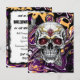 Invitación personalizada a la fiesta de Halloween. Invitaciones a postales de Halloween con cráneo de azúcar negro y morado.