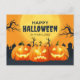 Celebremos Halloween con estilo con esta espeluznante postal naranja con calabazas brillantes, una luna llena y árboles embrujados. Perfecto para enviar saludos festivos o para usar como invitación de fiesta de Halloween. La parte posterior se deja en blanco para la nota manuscrita o los detalles del personalizado. Fácil de personalizar la fecha o el año para que se ajuste a su evento.