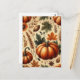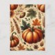 Una encantadora postal de calabaza con vegetación botánica, follaje de otoño y vibraciones festivas de Halloween. Perfecto para celebraciones de cosecha, festivales de otoño y saludos de Acción de Gracias.