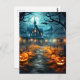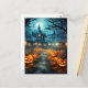 Esta postal única de Halloween muestra una mansión espeluznante bañada en luz de la luna, protegida por farolillos de jack 'o. Te invitamos a tomarte un momento para escribir tu mensaje en la parte trasera de esta postal.