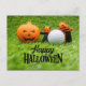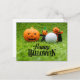 Postal Halloween de golf con pelota de golf y calabaza fa