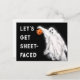 Graciosas tarjetas para adultos de Halloween con el fantasma original "Vamos a buscar cara de hoja".