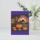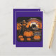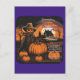A spooky scarecrow stands guard in a foggy pumpkin patch, its ragged hat casting a shadow over its eyes. In the distance, a house vanishes into black birds soar against a fiery orange sunset. This vintage-inspired design captures the essence of Halloween with its eerie atmosphere and classic imagery.
