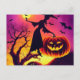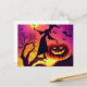 Postal Halloween Hexe tanzt mit Kürbiss im Mondlicht.