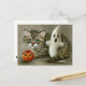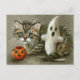 Postal Halloween Postcard Cat Kitten Ghost Pumpkin Art