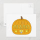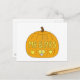 Una simple ilustración de una calabaza tallada con tres corazones y 'Sr y Sra'. La imagen está colocada sobre un fondo blanco. Una tarjeta romántica para celebrar una boda o aniversario de Halloween.