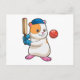 Postal Hámster en Cricket con bate y gorra de cricket