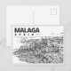 Postal Hand drawn Malaga Spain Landmark