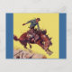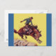 Ilustracion vintage de un vaquero colgado mientras monta un caballo balancín